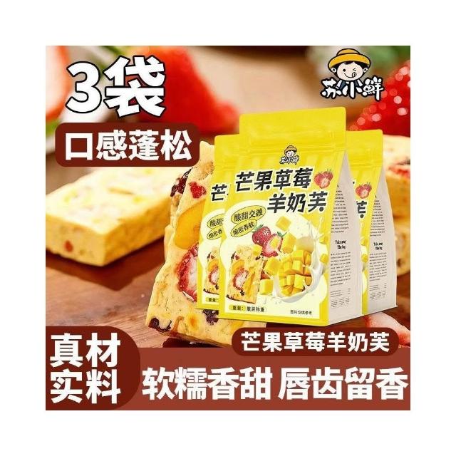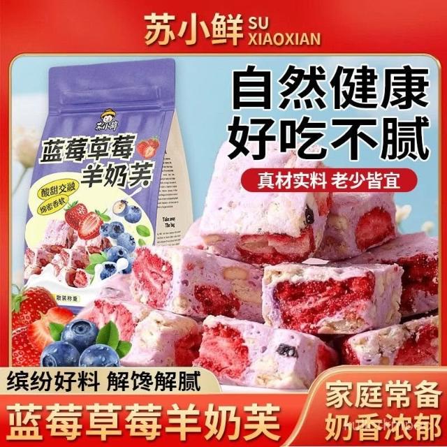 林林精選 蘇小鮮草莓羊奶芙棉花糖雪花酥糕點凍幹草莓藍莓芒果奶香零食125g