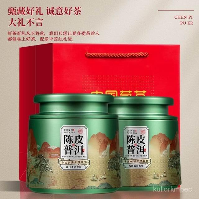 林林精選 茗傑茶葉新會老陳皮普洱雲南普洱小茶餅陳皮普洱茶熟茶罐裝500g