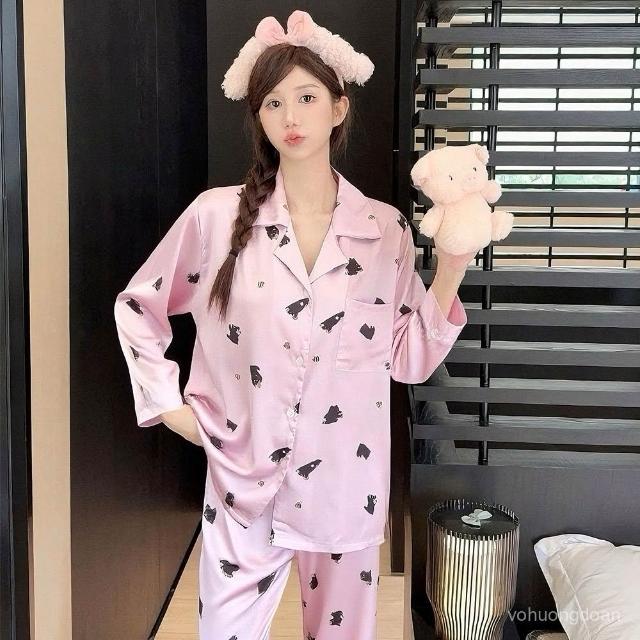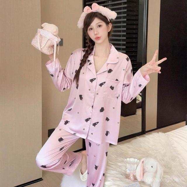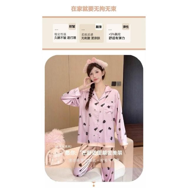 YMX-春秋季長袖冰雪絲睡衣女網紅爆款可愛少女卡通學生開衫套裝1
