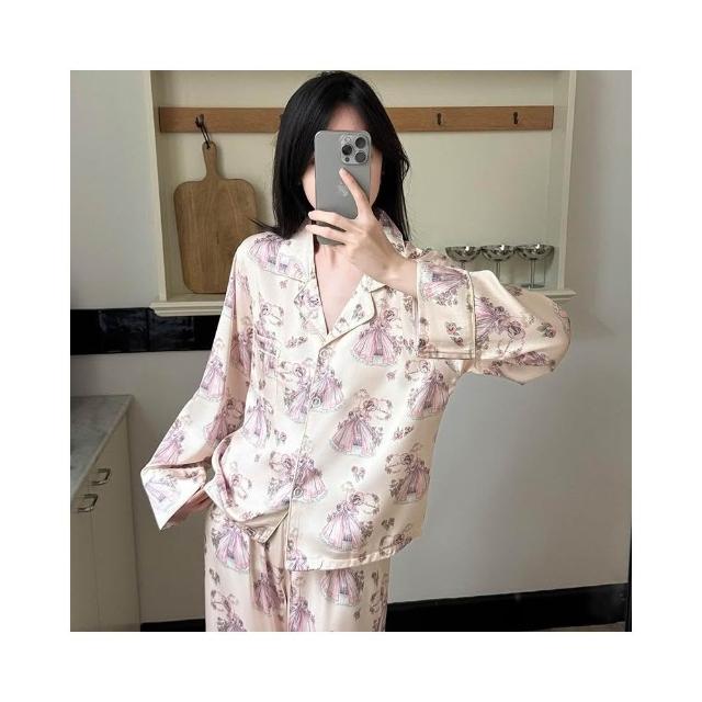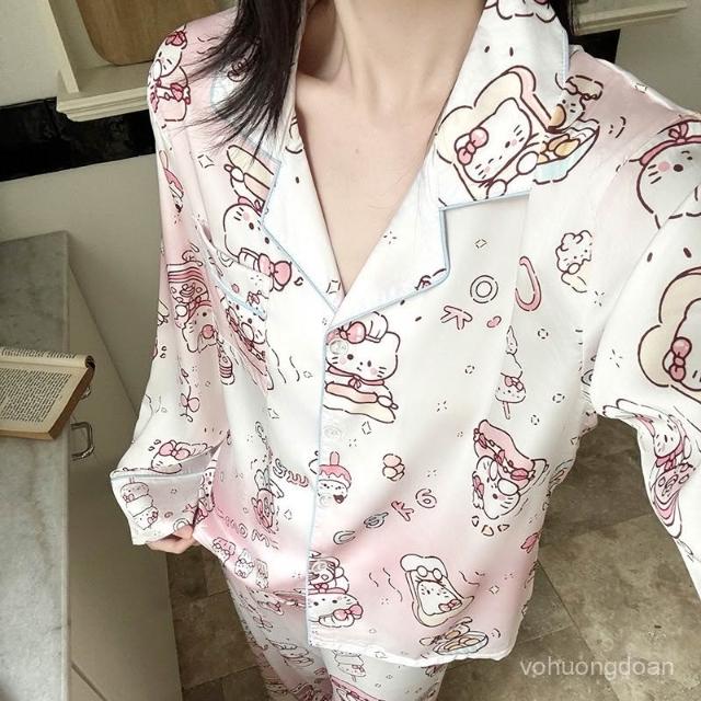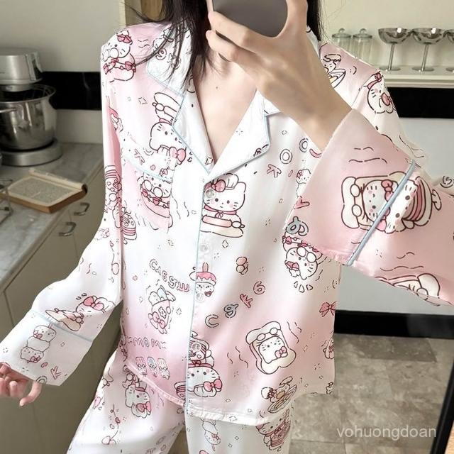 宜美欣-睡衣少女春夏季高級感睡衣冰雪絲綢長袖可愛卡通家居服套裝