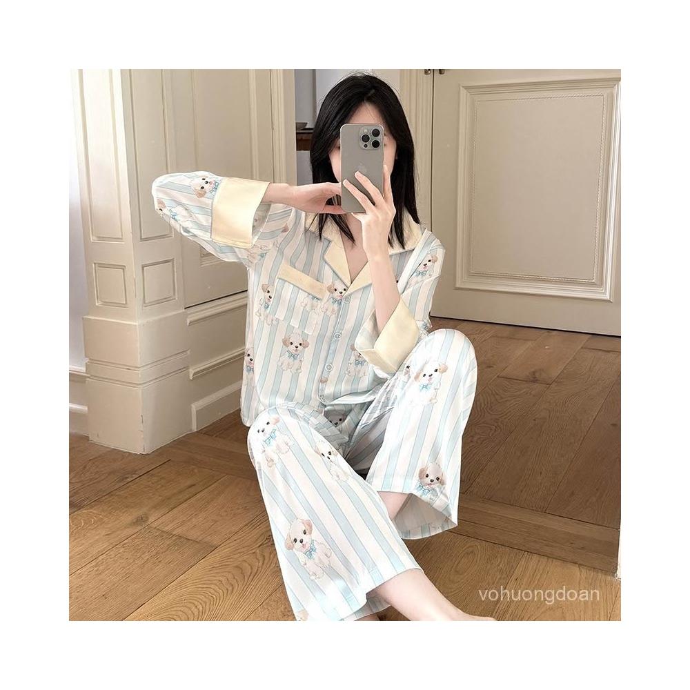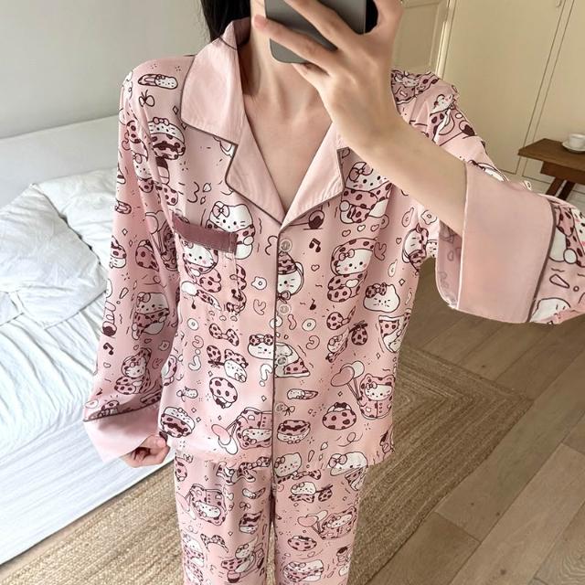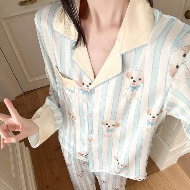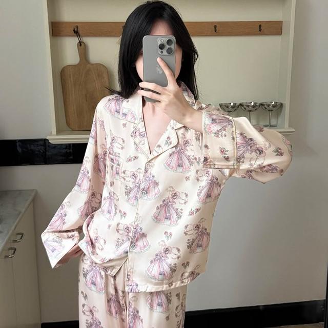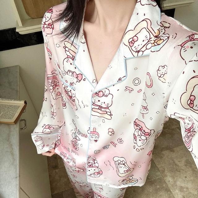 宜美欣-睡衣少女秋季高級睡衣感冰雪絲綢長袖可愛卡通家居服套裝