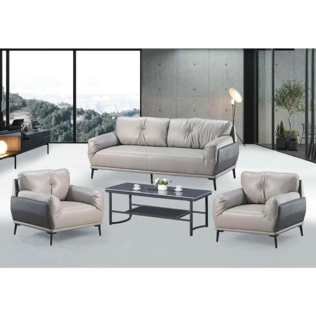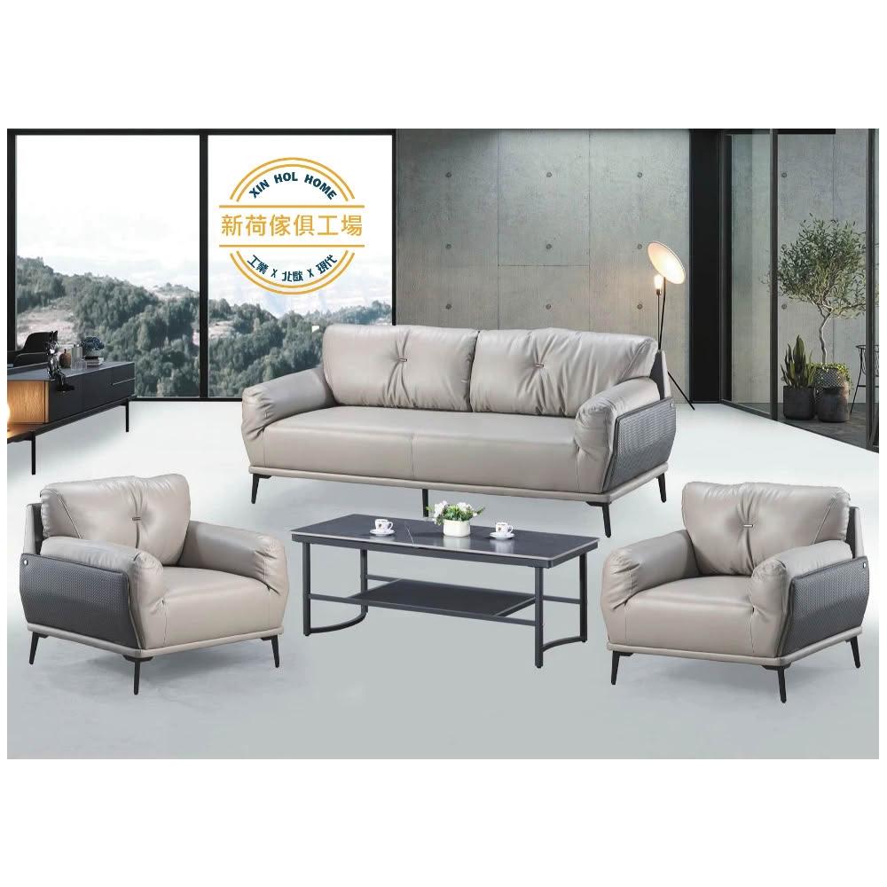 25E 414 拼色銀飾拉釦皮沙發組(不含茶几) 高腳沙發 皮沙發 科技布沙發 三人沙發 半牛皮 L型