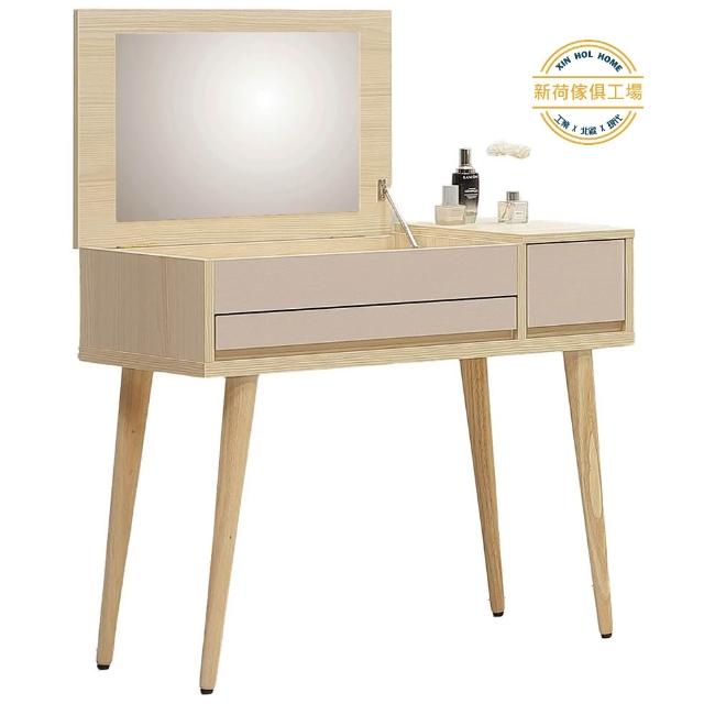 新荷傢俱工場26T 217 奶茶色3尺化妝台 3尺掀鏡台 北歐雙色化妝台 雙色斗櫃 玻璃斗櫃 3.5尺斗櫃