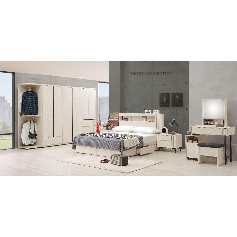 新荷傢俱工場26W 062 艾德恩5尺床頭 5尺三抽床底 床頭櫃 伸縮化妝台 鏡台 斗櫃 USB插座床頭 五斗櫃