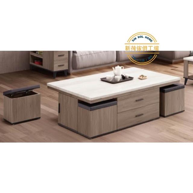 新荷傢俱工場26W 221 灰橡仿石5尺茶几 2尺仿石小茶几 ☆ 4椅凳茶几 客廳 灰橡茶几 5尺大茶几