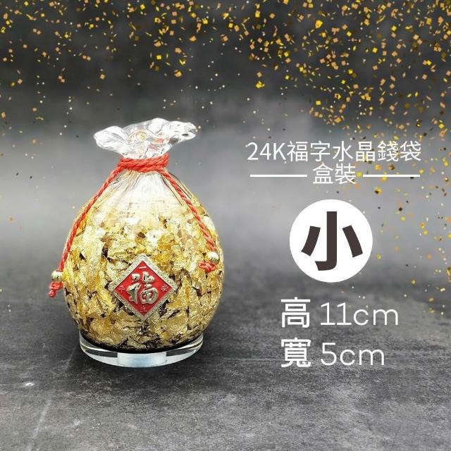 |雨林薰舍|24K福字水晶錢袋(盒裝) 招財吉祥 金箔福袋 擺件 水晶招財