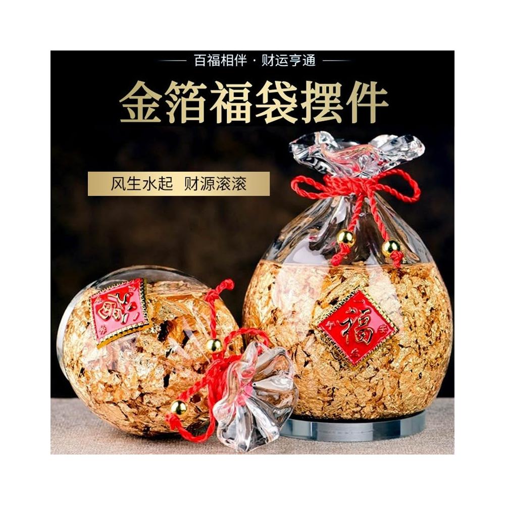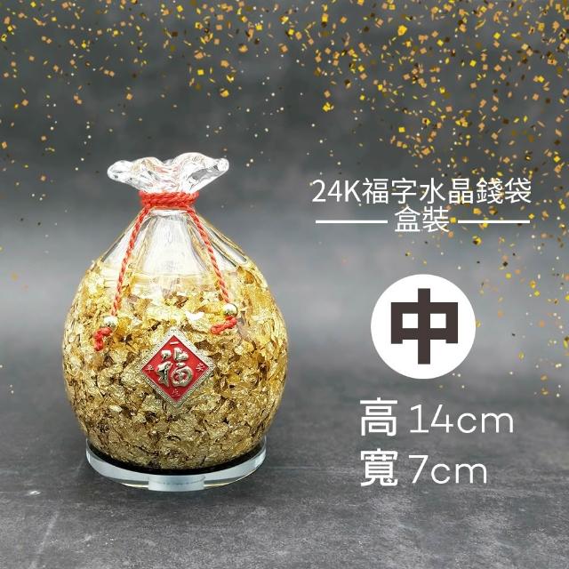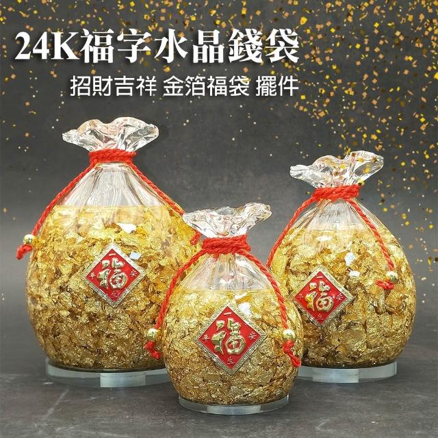 |雨林薰舍|24K福字水晶錢袋(盒裝) 招財吉祥 金箔福袋 擺件 水晶招財