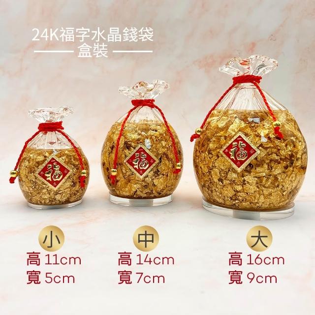 |雨林薰舍|24K福字水晶錢袋(盒裝) 招財吉祥 金箔福袋 擺件 水晶招財