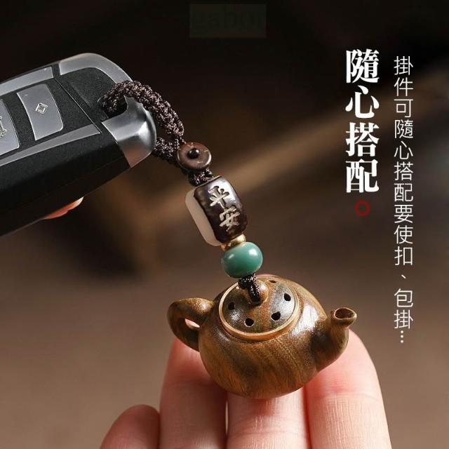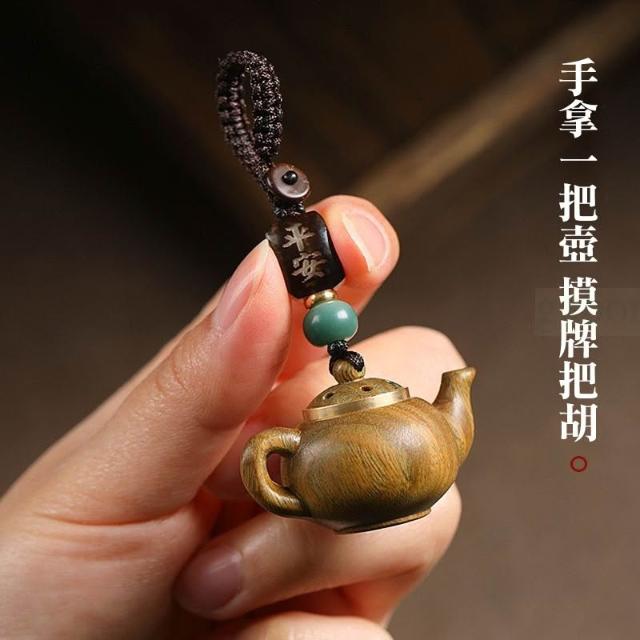 |雨林薰舍|綠檀木茶壺造型鑰匙扣(送香丸一顆) 鑰匙扣