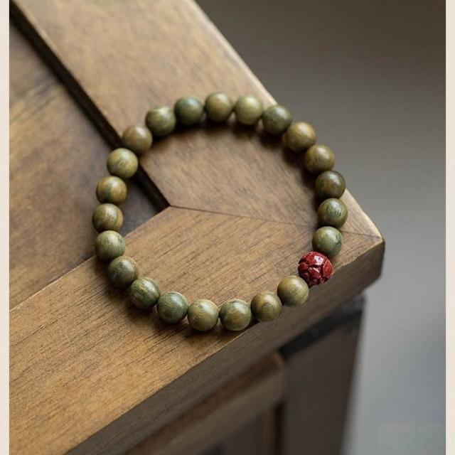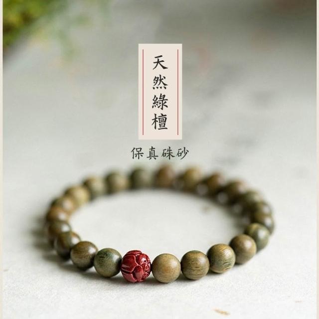 |雨林薰舍|(#37~#43)新中式綠檀香手串 男女森林系手鍊 復古中國風 檀香手串 情侶佛珠手串 朱砂手串 綠松石手串