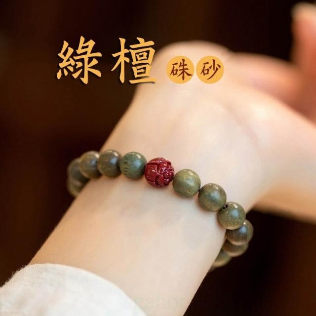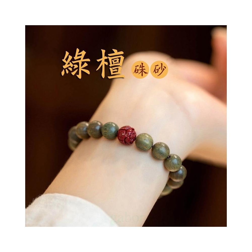 |雨林薰舍|(#37~#43)新中式綠檀香手串 男女森林系手鍊 復古中國風 檀香手串 情侶佛珠手串 朱砂手串 綠松石手串