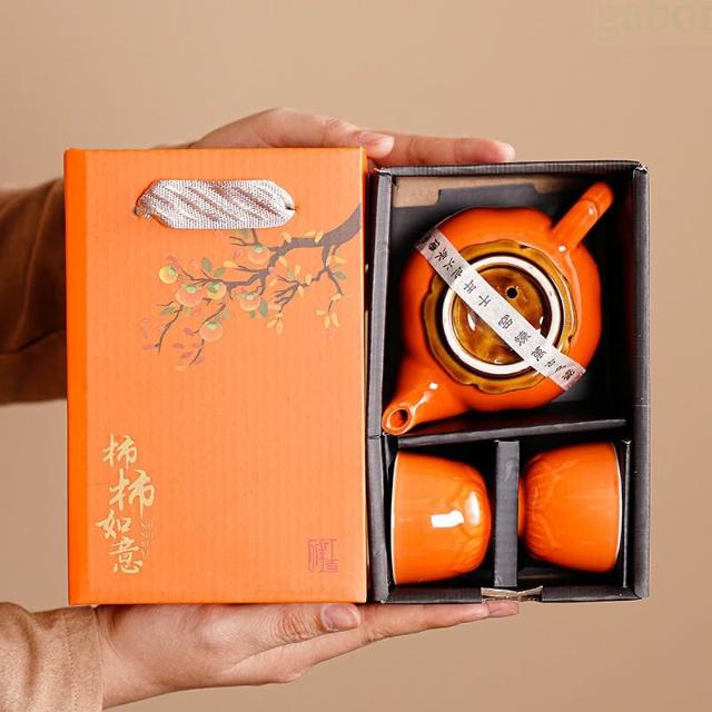 |雨林薰舍|柿柿如意茶具禮品組(一壺四杯一茶葉罐/一壺二杯)