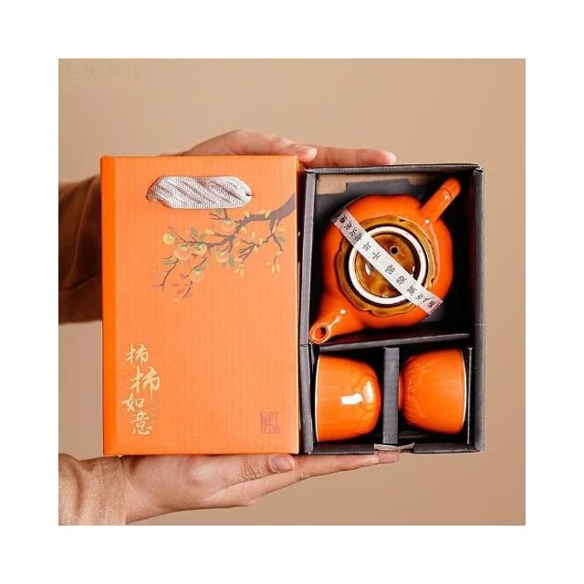 |雨林薰舍|柿柿如意茶具禮品組(一壺四杯一茶葉罐/一壺二杯)