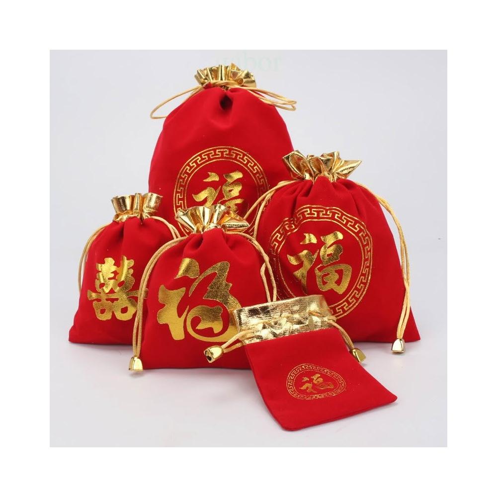 |雨林薰舍|燙金金邊福字絨布袋 新春福袋 新年福袋包 包裝袋 春新另類紅包袋 福氣香包袋