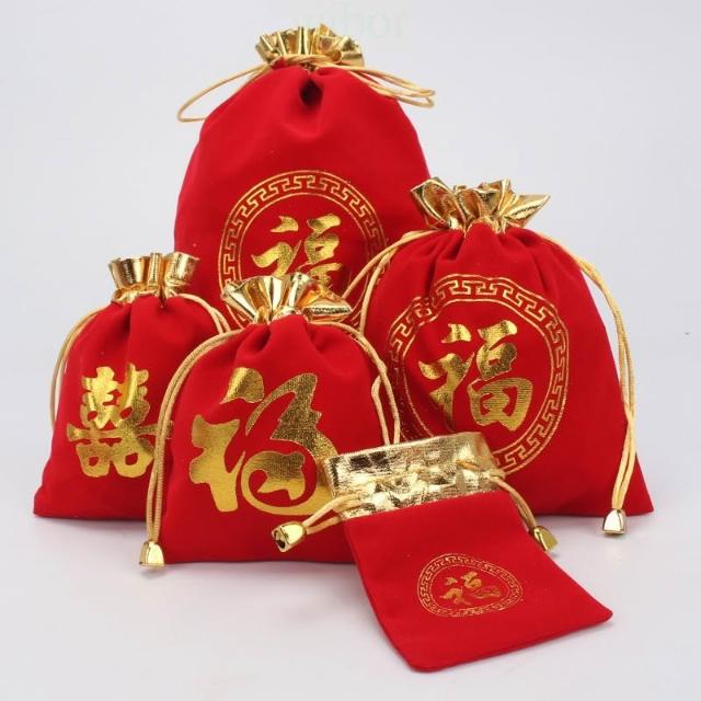 |雨林薰舍|燙金金邊福字絨布袋 新春福袋 新年福袋包 包裝袋 春新另類紅包袋 福氣香包袋