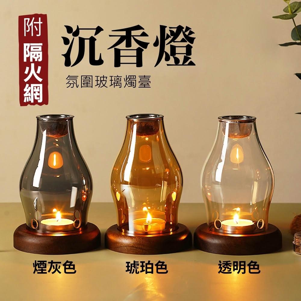 |雨林薰舍|沉香燈(附隔火網) 玻璃燭臺 家用美容院 安神香薰燈 檀香 沉香燈 薰香爐 中式蠟燭 玻璃瓶
