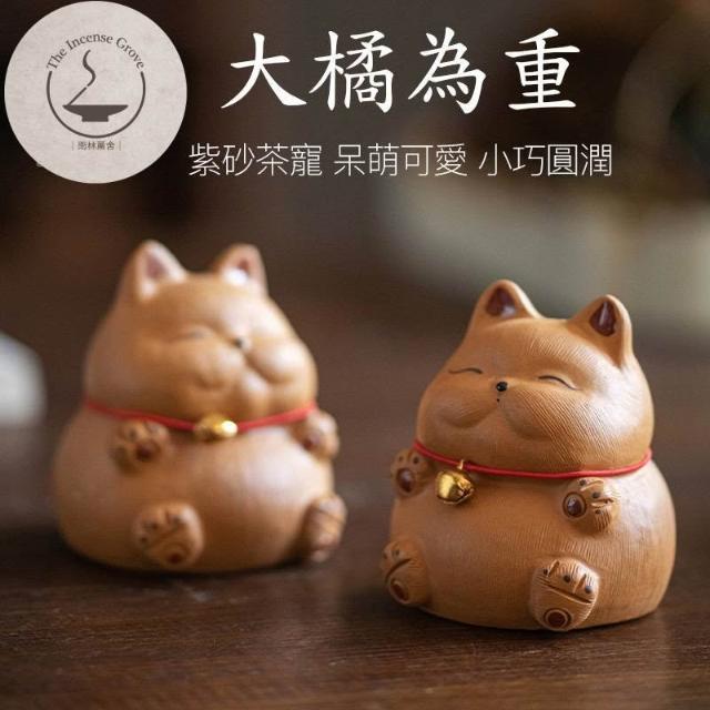 |雨林薰舍|紫砂茶寵/療癒擺件 大橘為重 柴圓滾滾 紫砂石敢當老虎茶寵 鎮宅 避邪 止風 拍穢 茶玩 茶道工具 茶桌擺件