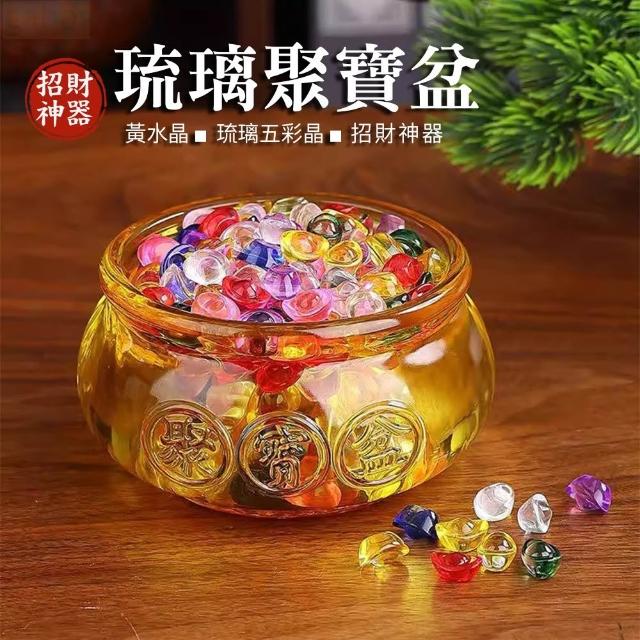 |雨林薰舍|琉璃聚寶盆 黃水晶 琉璃五彩晶 招財聚寶盆 聚寶盆 招財開運 財位 招財擺件 招財神器