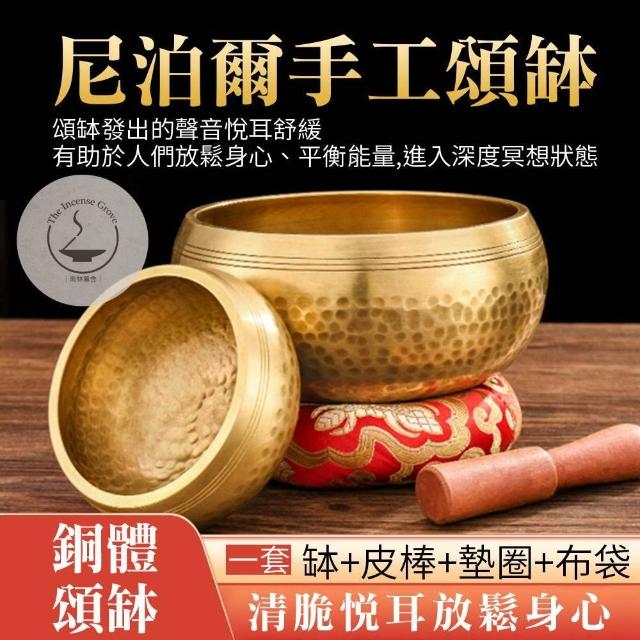 |雨林薰舍|尼泊爾手工頌缽(缽+皮棒+墊圈+布袋) 佛音碗 瑜伽冥想音療缽 梵音缽音碗 靜心缽 銅磬法器 麟紋缽 誦經缽