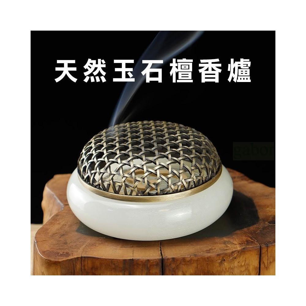 |雨林薰舍|天然玉石檀香爐 白玉香爐 不鏽鋼墊片家用室內擺件 薰香爐 香道 香篆爐 香爐 盤香爐 環香爐 無粘粉香爐