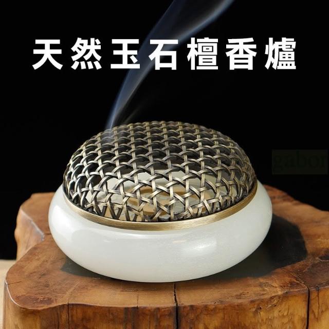 |雨林薰舍|天然玉石檀香爐 白玉香爐 不鏽鋼墊片家用室內擺件 薰香爐 香道 香篆爐 香爐 盤香爐 環香爐 無粘粉香爐