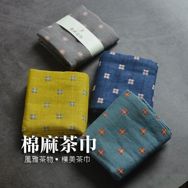 |雨林薰舍|棉麻茶巾 小清新手工茶巾 禪意方格茶布 不掉毛養壺方巾小茶席 吸水茶桌抹布素雅茶墊布茶毛巾 茶道配件