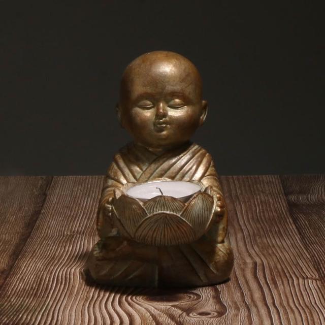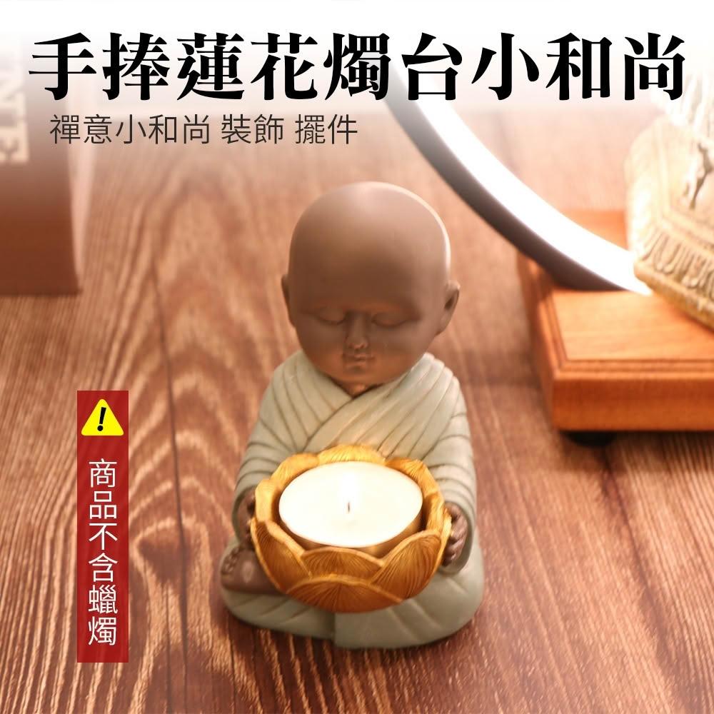 |雨林薰舍|手捧蓮花燭台小和尚 禪意小和尚 裝飾 擺件
