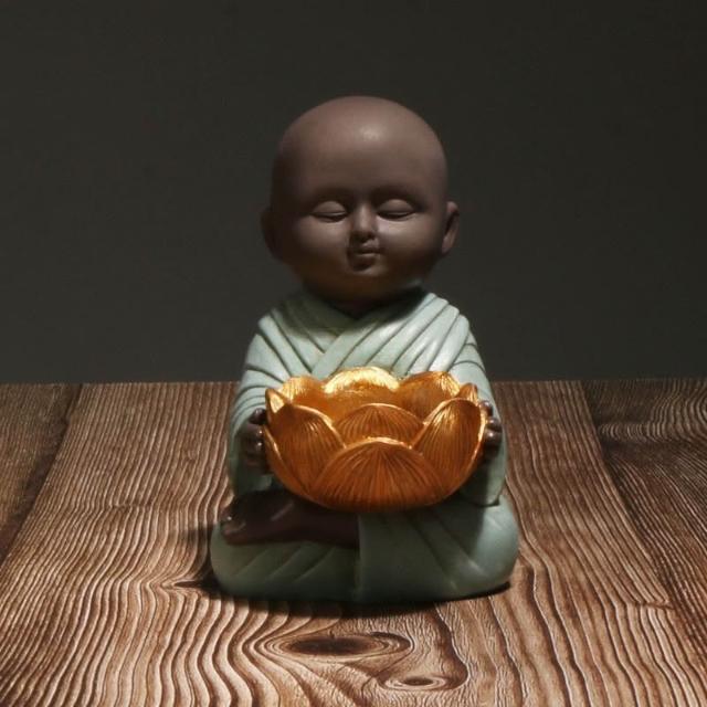 |雨林薰舍|手捧蓮花燭台小和尚 禪意小和尚 裝飾 擺件