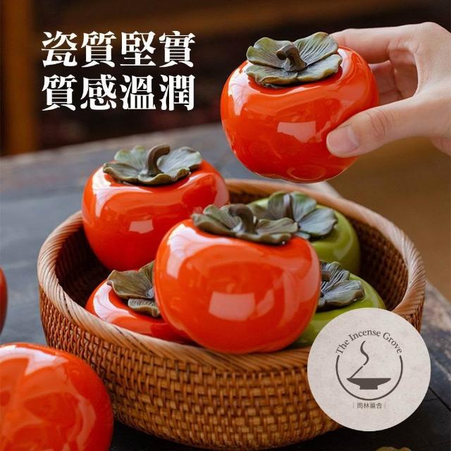 |雨林薰舍|柿子茶葉罐(禮盒組) 事事如意陶瓷罐 仿真水果 居家擺飾 吉祥藝術品 柿柿如意 茶道工具 泡茶茶葉罐
