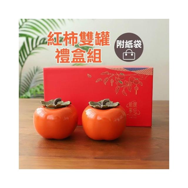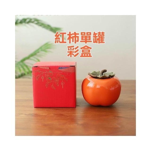 |雨林薰舍|柿子茶葉罐(禮盒組) 事事如意陶瓷罐 仿真水果 居家擺飾 吉祥藝術品 柿柿如意 茶道工具 泡茶茶葉罐