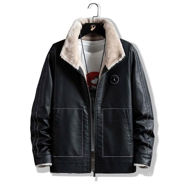 PU皮毛絨一體皮衣男外套加絨加厚中青年翻毛領韓版皮夾克冬季新款