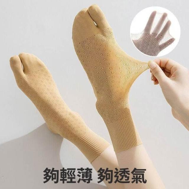 分趾襪女夏季新款舒適網眼透氣薄款鏤空中筒分趾襪子