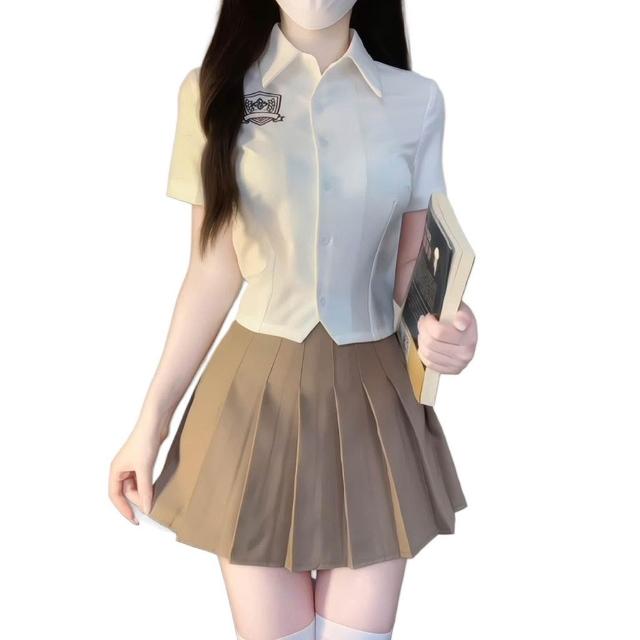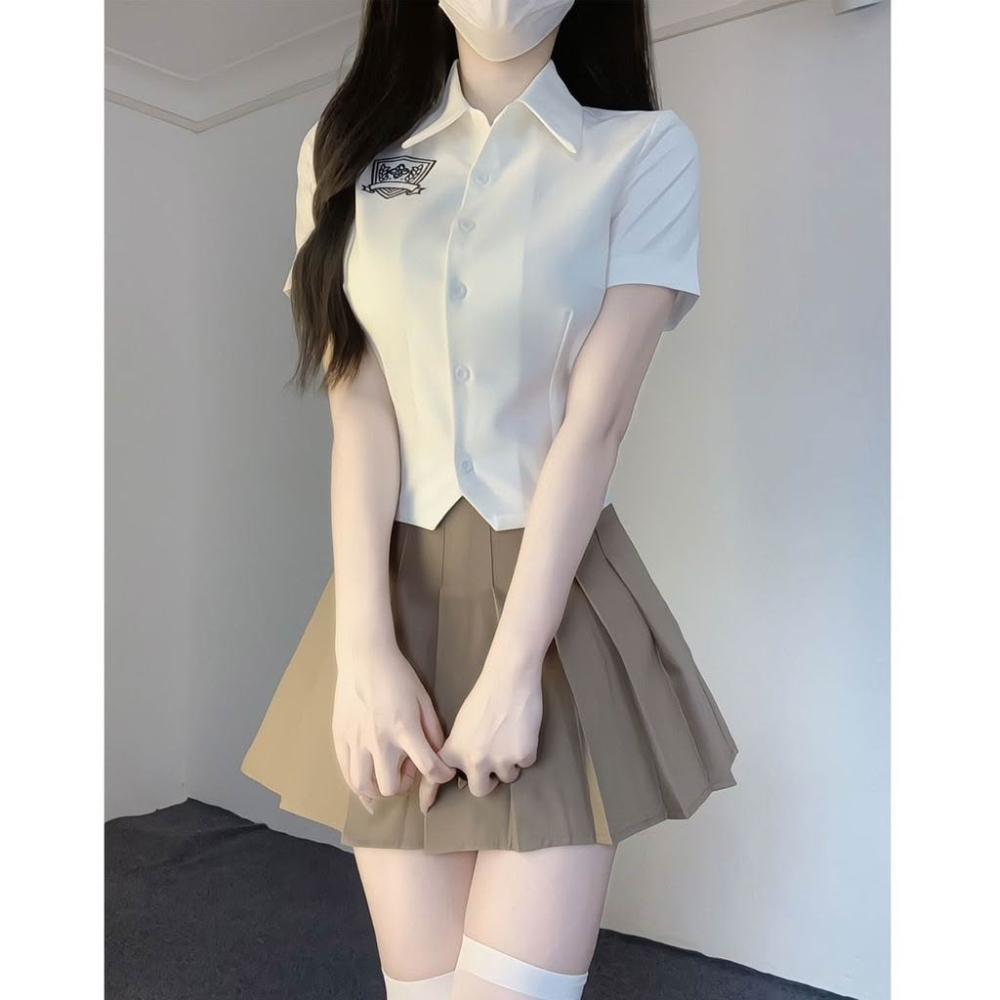 新款時尚修身短款短袖襯衫百褶裙JK辣妹制服套裝女學院風甜美御姐