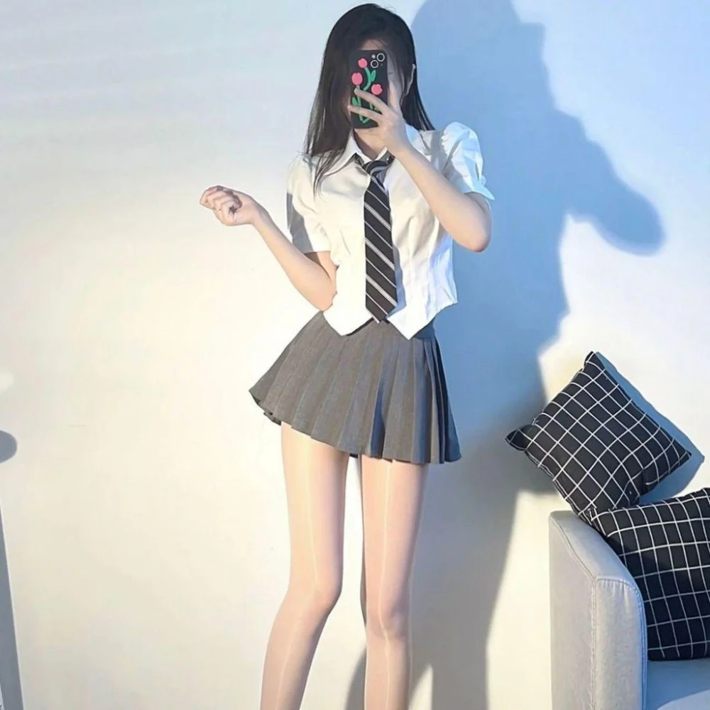 2026學院風短款襯衫女修身襯衣領帶收腰上衣搭配百褶裙jk制服套裝