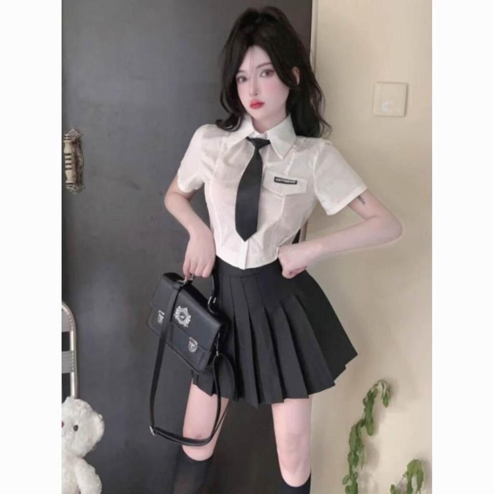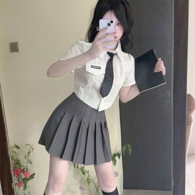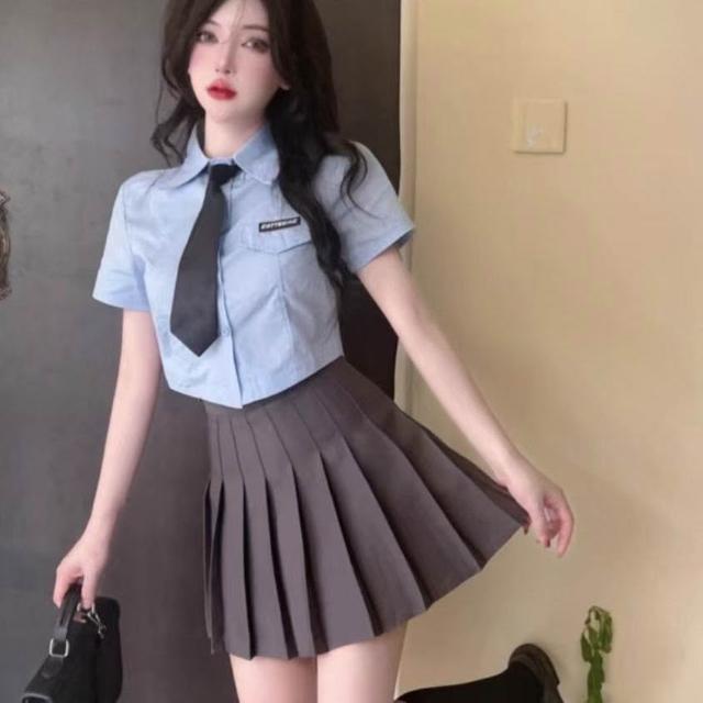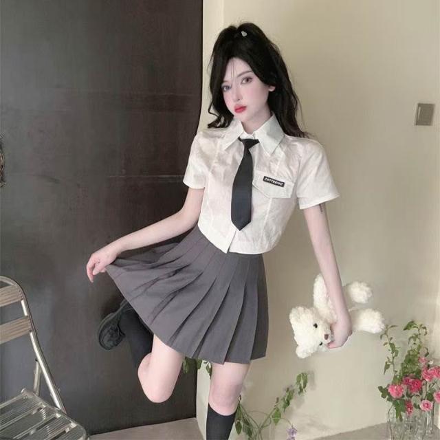 2026夏季新款襯衫小個子短袖學院風襯衣領帶百搭百褶裙套裝兩件套