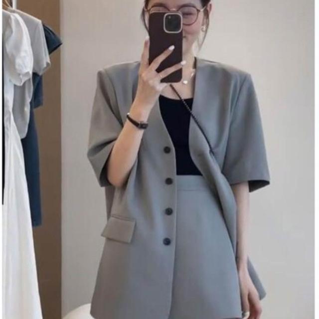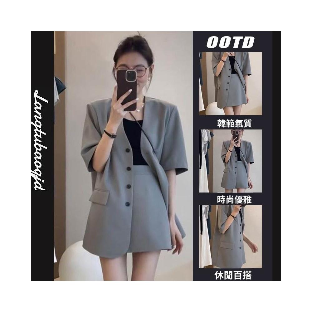 夏季西裝短褲套裝女2026新款時尚休閒短袖西服外套高腰短裙兩件套