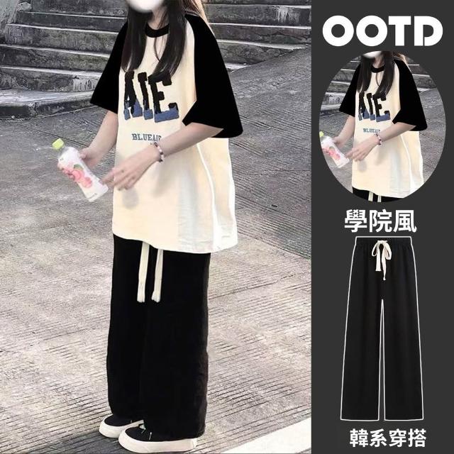 夏季爆款2026插肩短袖套裝女學生寬鬆T恤+時尚直筒闊腿褲兩件套潮
