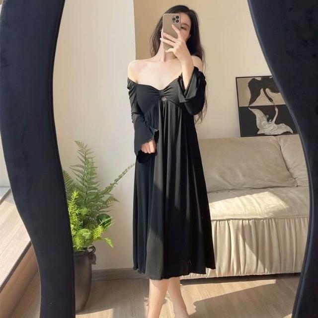 大碼法式性感氣質鏤空睡裙長袖帶胸墊連衣裙新款睡衣顯瘦家居服女