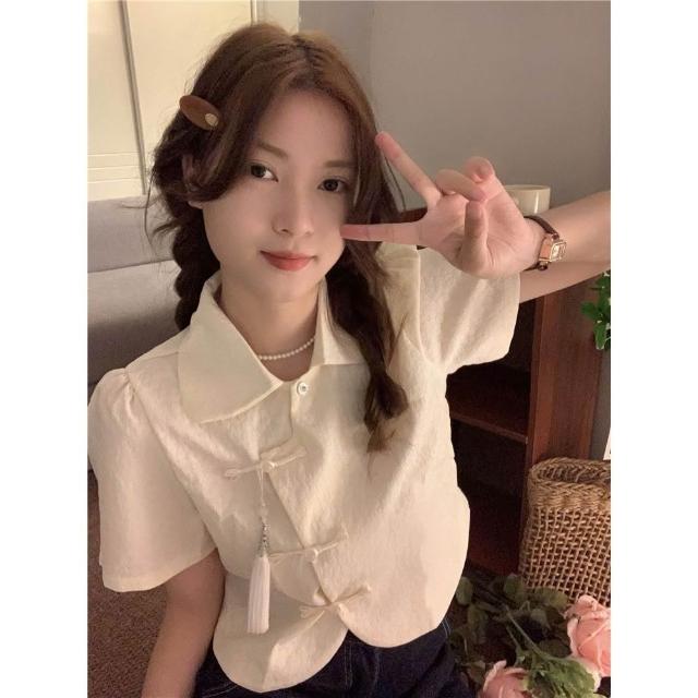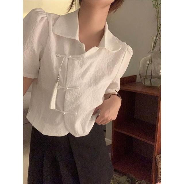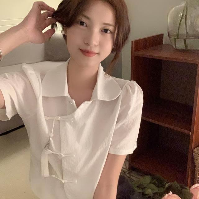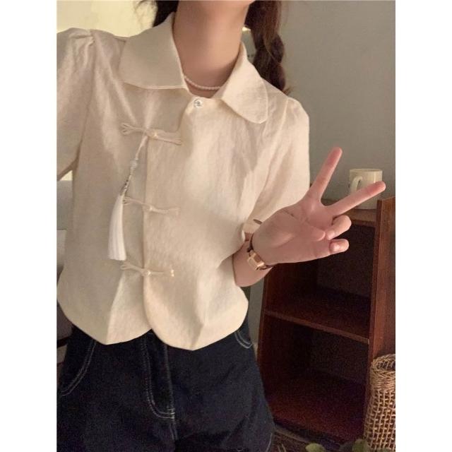 民國風盤扣襯衫女寬鬆短袖襯衣設計感小衆新中式上衣夏季2026新款