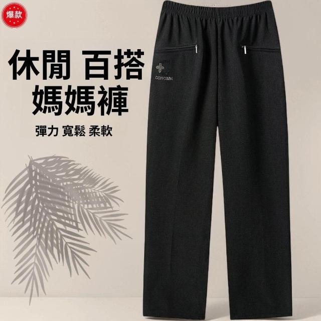 春夏款中老年媽媽褲拉鍊口袋婆婆奶奶寬鬆九分褲休閒直筒鬆緊長褲