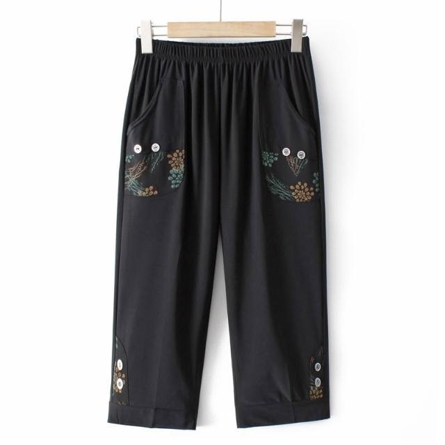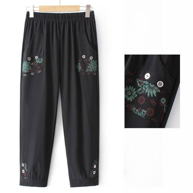 媽媽褲子夏季薄款冰絲七分褲中老年人九分褲女寬鬆奶奶高腰休閒褲