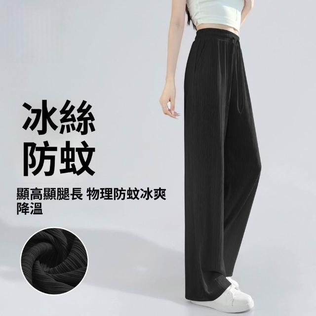 夏季冰絲闊腿褲女士薄款小個子新款休閒高腰垂感直筒涼涼褲子顯瘦