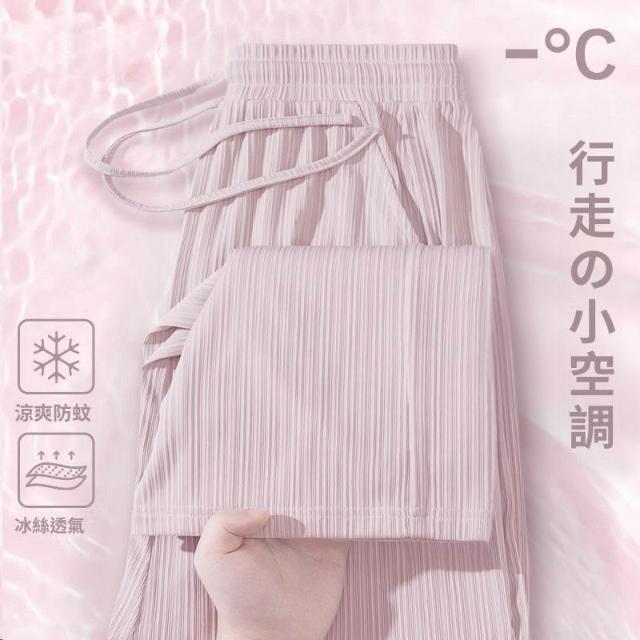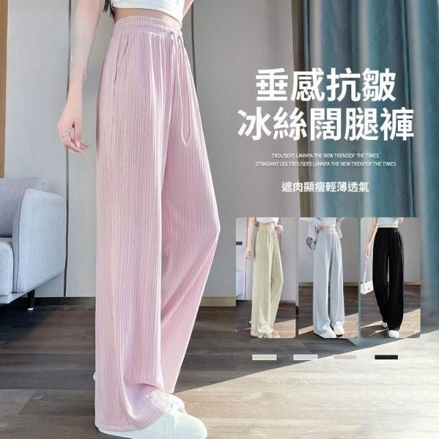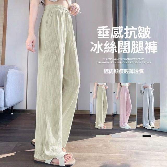 垂感冰絲闊腿褲女裝夏季涼涼輕薄款寬鬆高腰直筒褲子洋氣韓版氣質