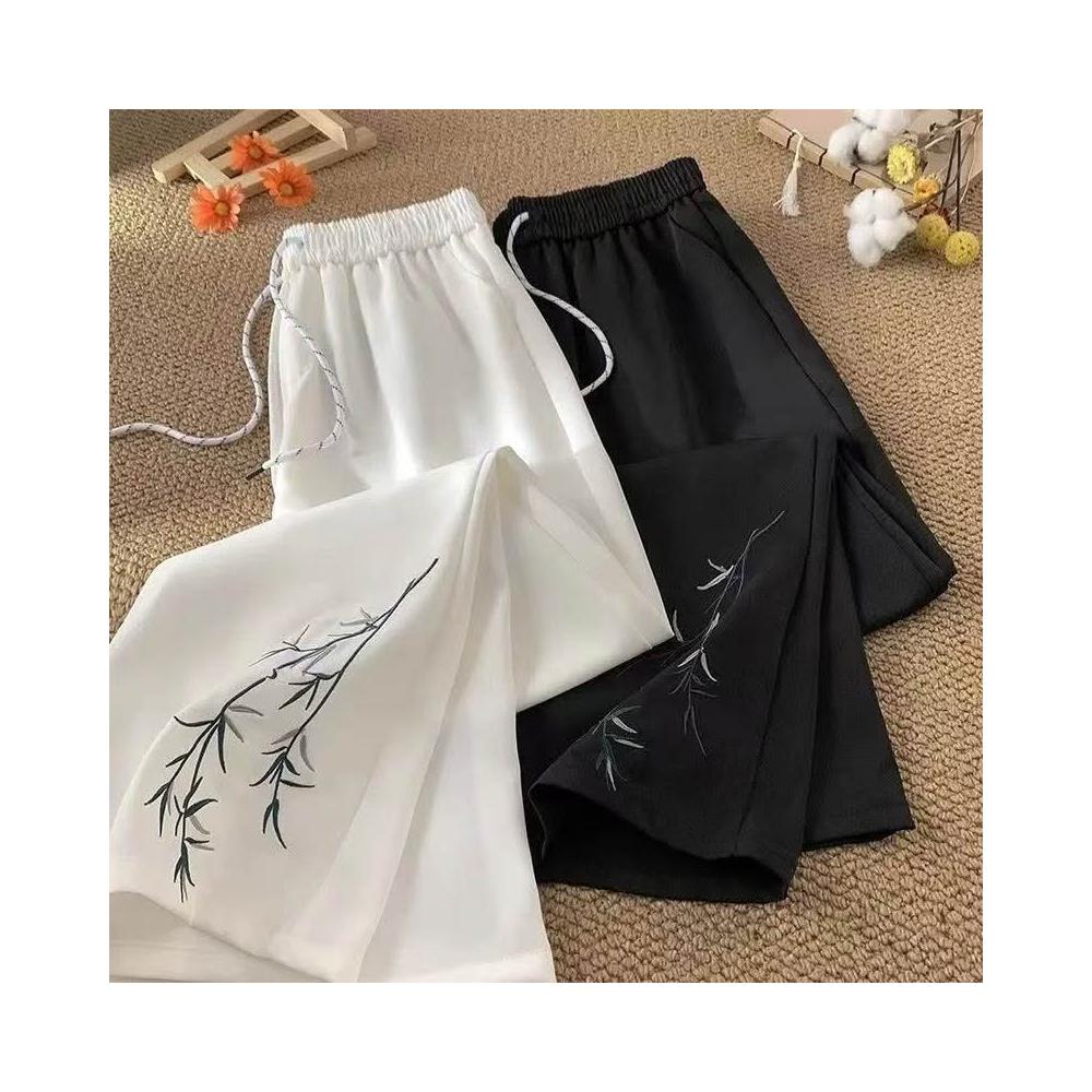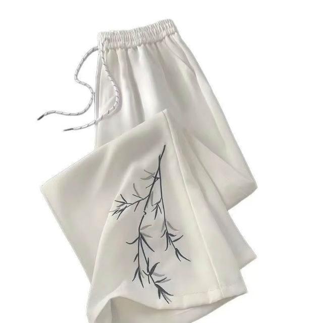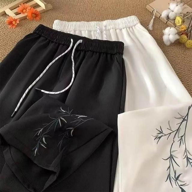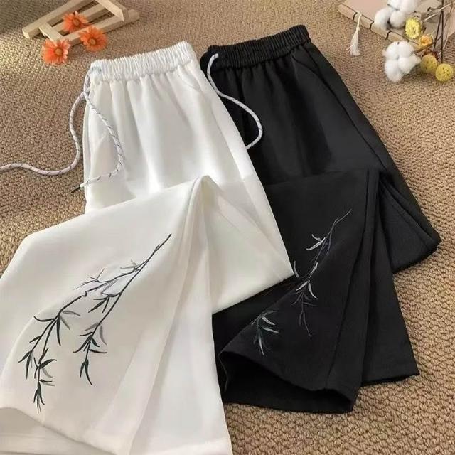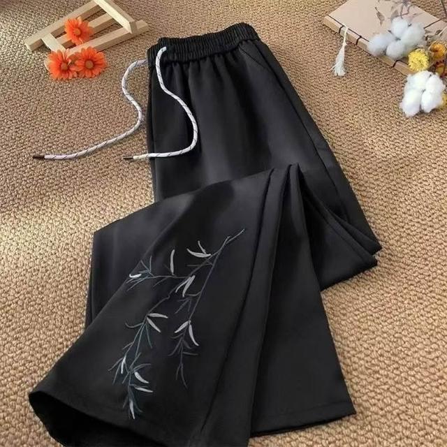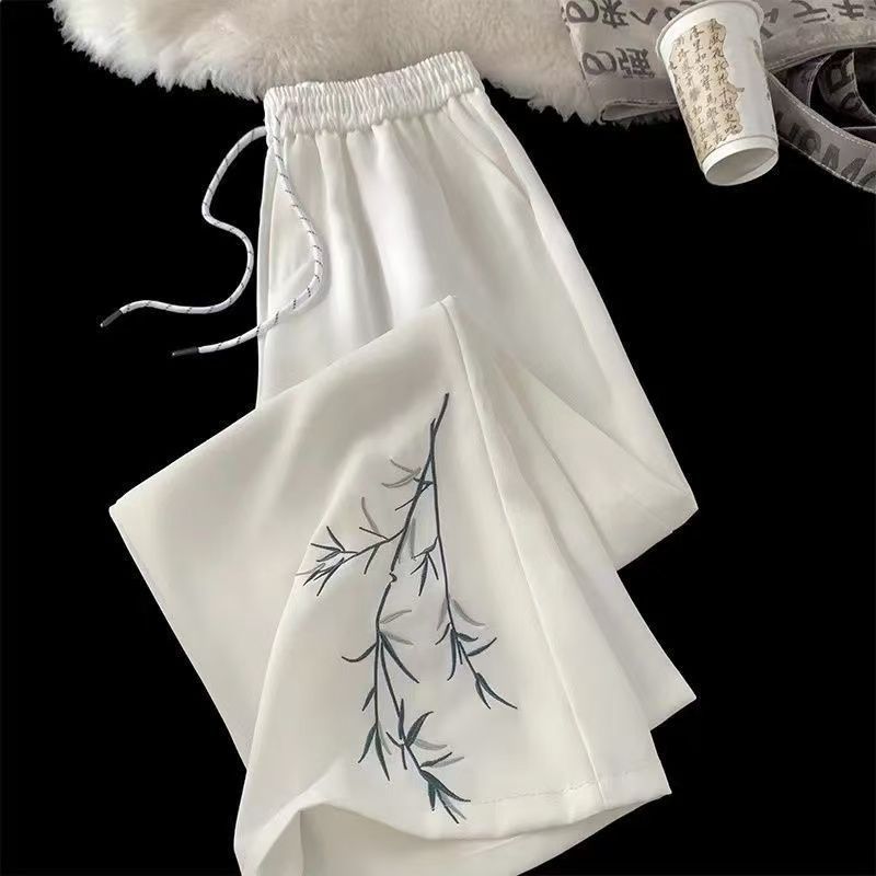 新中式國風竹子刺繡西褲寬鬆男女潮牌春夏薄款直筒闊腿休閒長褲潮