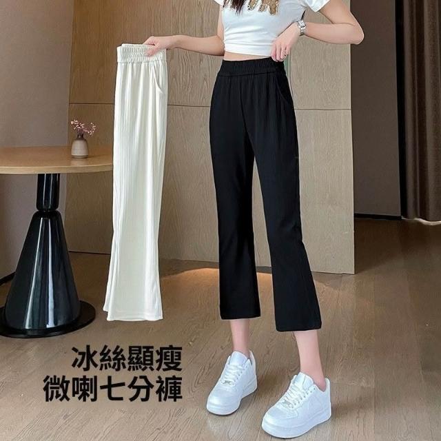 微喇叭褲女夏季薄款冰絲2026新款高腰顯瘦休閒闊腿七分九分褲子夏