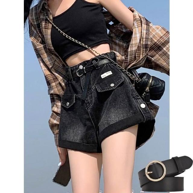 黑色牛仔短褲女夏季薄款2026新款高腰卷邊設計感a字闊腿辣妹熱褲