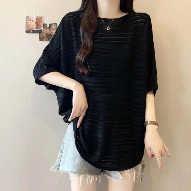 2026夏季大碼女裝胖mm高級感黑色正肩短袖T恤遮肚顯瘦蝙蝠袖上衣
