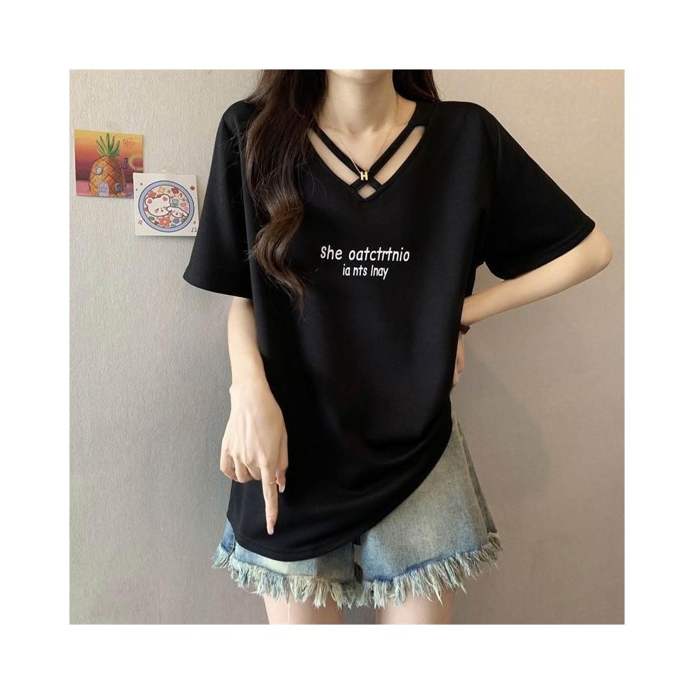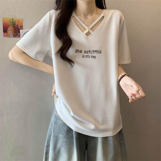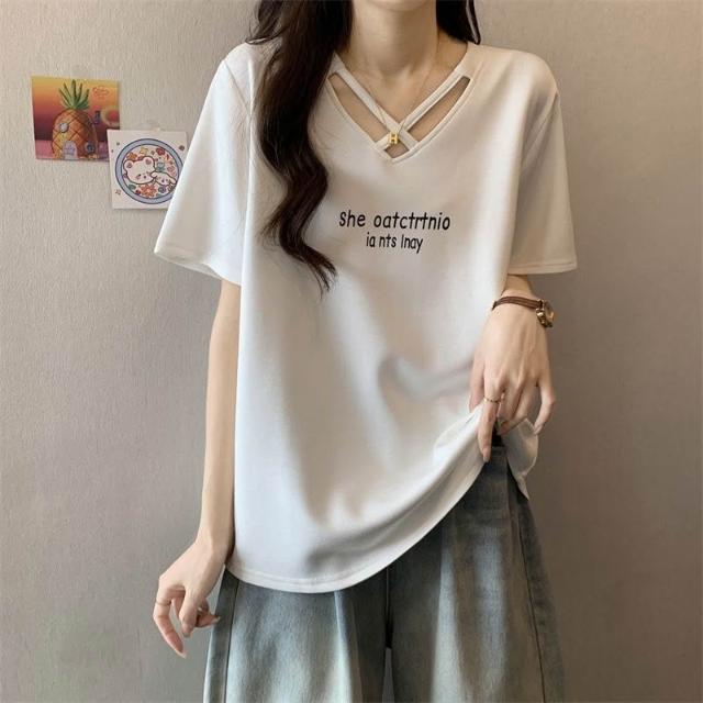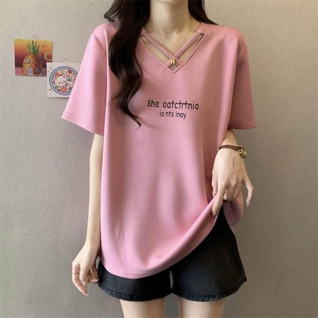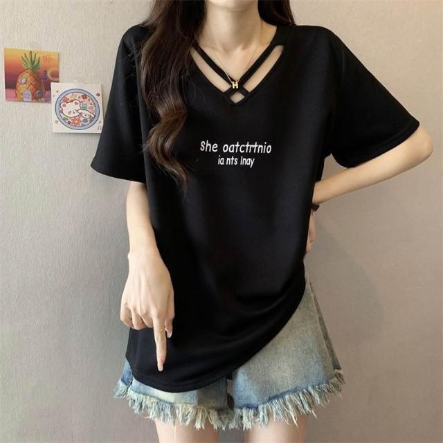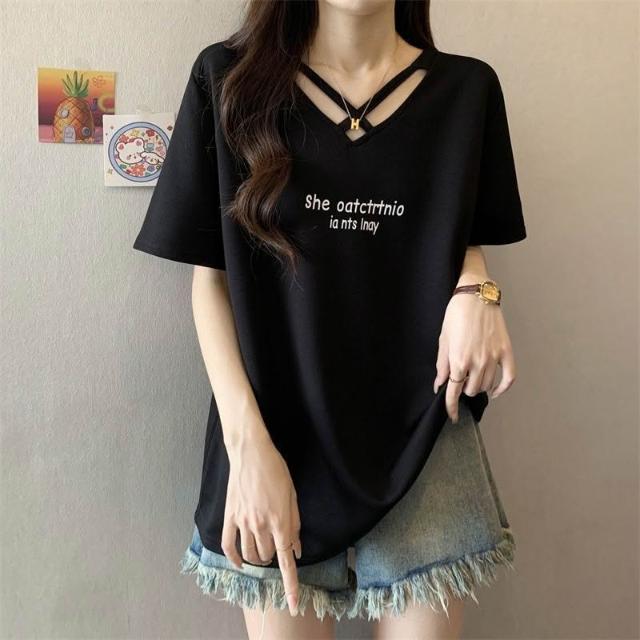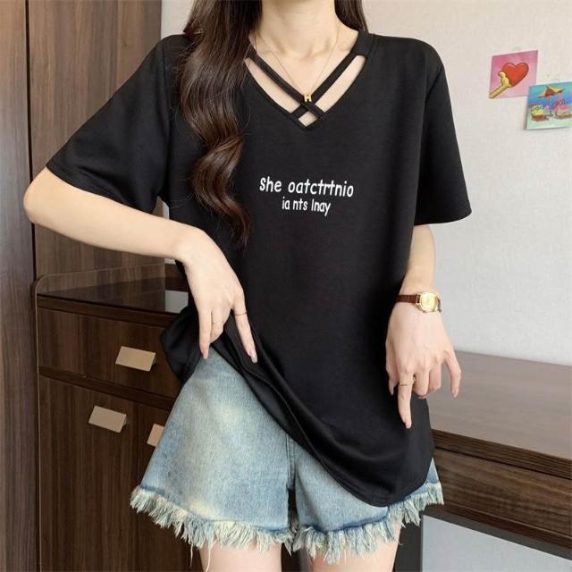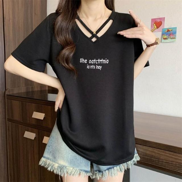 夏季新款棉顯瘦設計短袖t恤女胖mm大碼時尚休閒半袖體恤上衣服ins