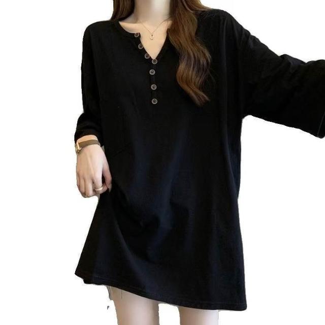 中長款v領短袖t恤女夏季大碼胖mm遮屁股2-300斤洋氣遮肉顯瘦上衣