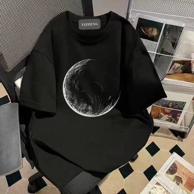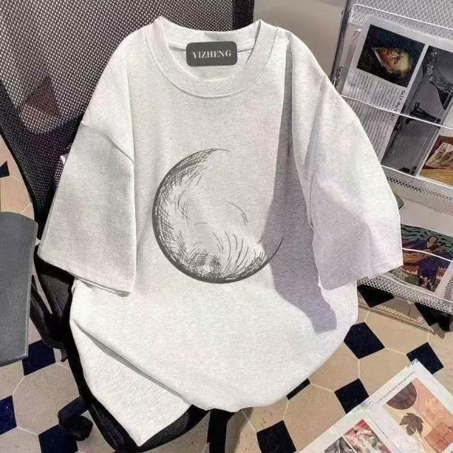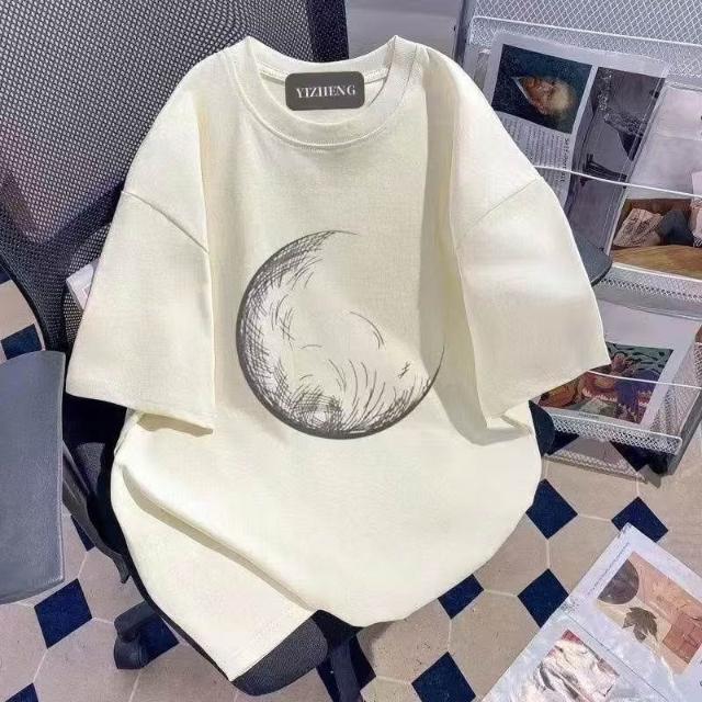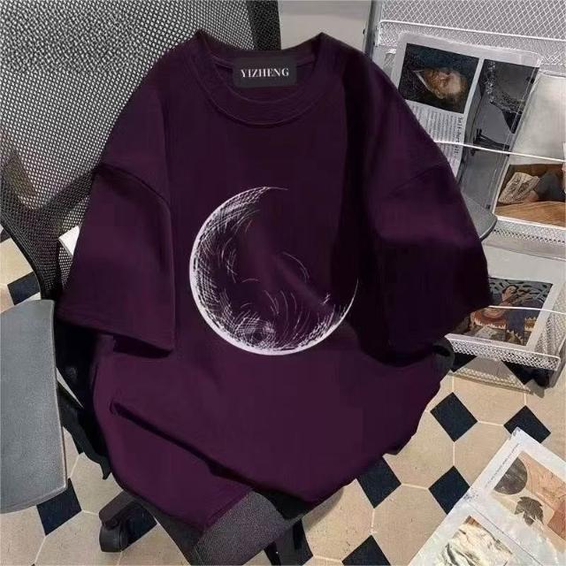 美式復古100%純棉T恤重磅短袖寬鬆落肩葡萄紫色印花男女情侶潮流